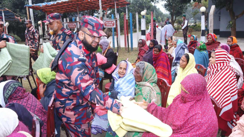 শীতার্ত মানুষের পাশে পত্নীতলা বিজিবি