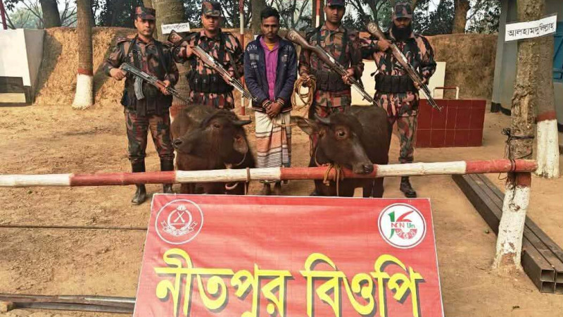 পোরশায় একজন চোরাকারবারি সহ ভারতীয় মহিষ আটক