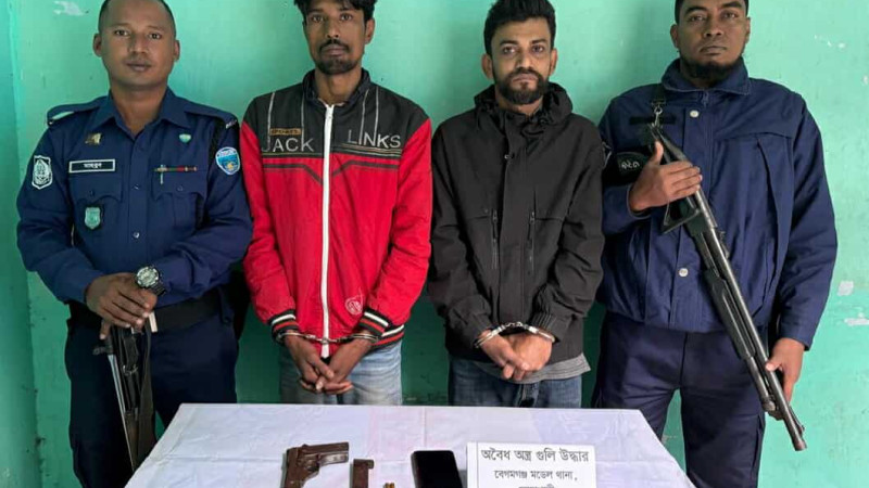 নোয়াখালীতে আবাসিক হোটেল থেকে বিদেশি পিস্তল-গুলিসহ গ্রেপ্তার ২