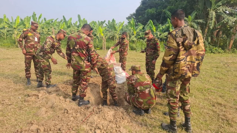 সেনাবাহিনীর উদ্যোগে দৌলতপুরে উদ্ধার হওয়া মর্টার শেল ধ্বংস