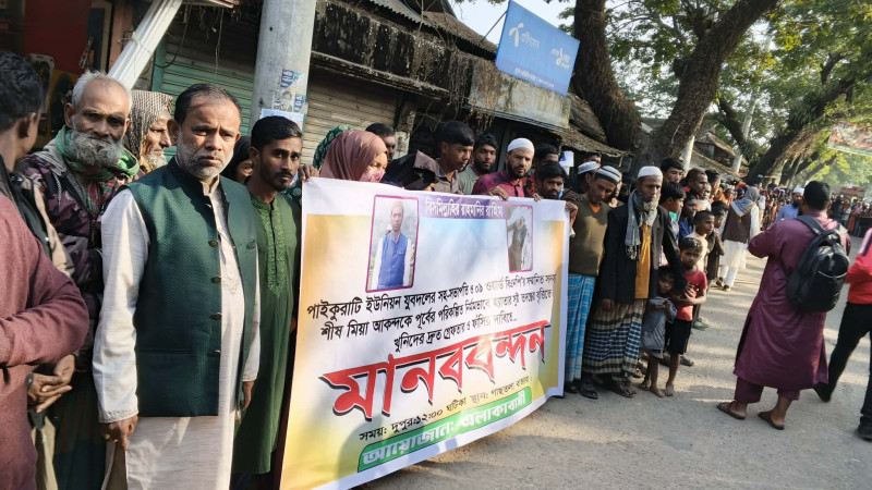 ধর্মপাশায় শীষ মিয়ার হত্যার দোষীদের গ্রেফতারের দাবীতে মানববন্ধন