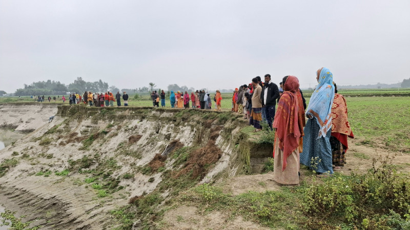 শেরপুরে বহ্মপুত্র নদ খননে অনিয়মের অভিযোগ স্থানীয়দের ;ভাঙ্গছে ফসলি জমি