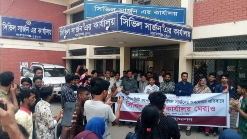 নারায়ণগঞ্জে ডেঙ্গু প্রতিরোধে অবহেলার প্রতিবাদে সিভিল সার্জন কার্যালয় ঘেরাও