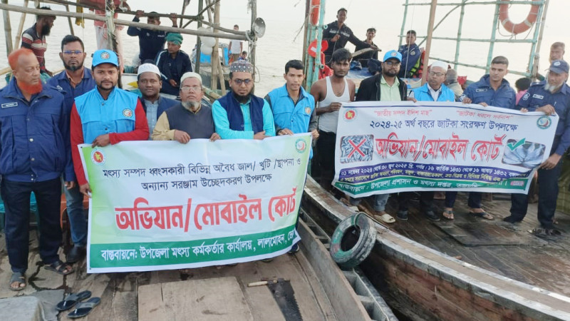 লালমোহনের মেঘনায় ৩০ লাখ টাকার অবৈধ জাল-খুটি ধ্বংস