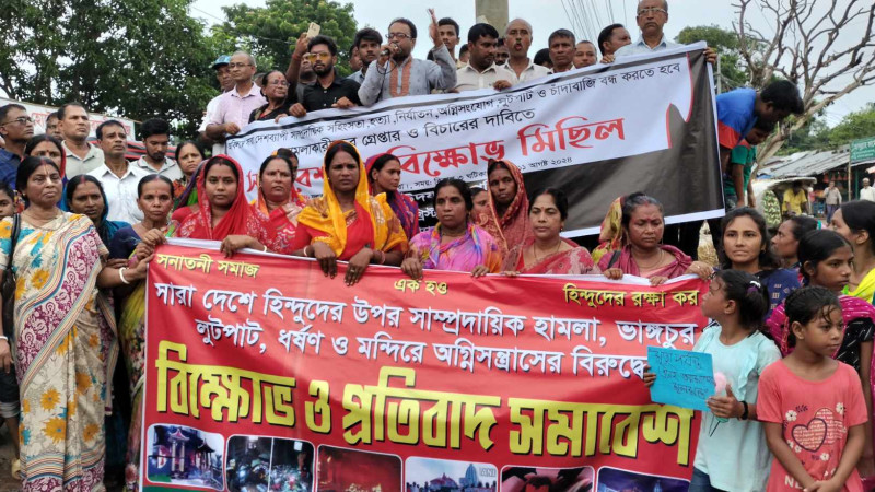 মধ্যনগরে হিন্দু সম্প্রদায়ের বিক্ষোভ মিছিল ও সমাবেশ