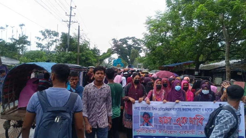 কালিগঞ্জের নলতা কলেজের অধ্যক্ষের পদত্যাগের দাবিতে বিক্ষোভ ও মানববন্ধন