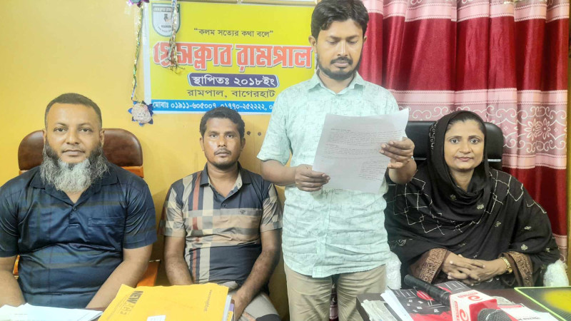 বাগেরহাটে কন্যা হত্যাকারিদের গ্রেফতার ও বিচারের দাবীতে চুলকাটি প্রেসক্লাবে পিতার সংবাদ সম্মেলন