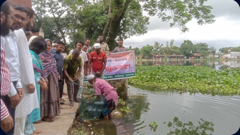 তাহিরপুরে জাতীয় মৎস্য সপ্তাহ উপলক্ষ্যে পোনামাছ অবমুক্ত