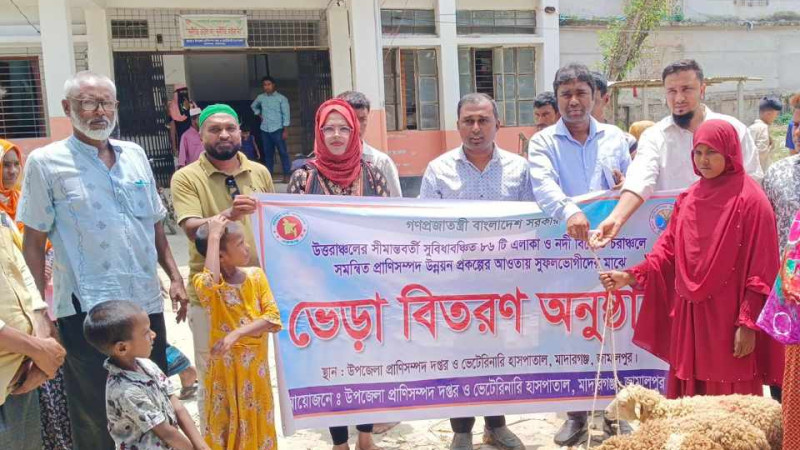 মাদারগঞ্জে ৬৩টি পরিবারের মাঝে বিনামূল্যে ভেড়া বিতরণ