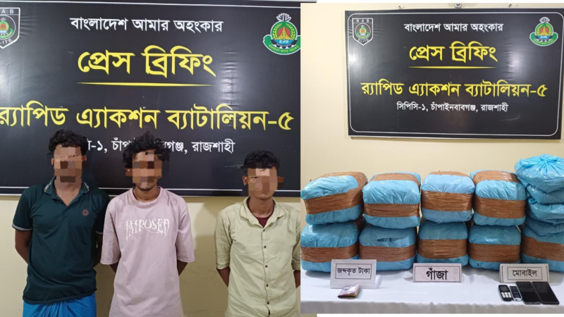 চাঁপাইনবাবগঞ্জে র্যাবের অভিযান, বিপুল পরিমাণ গাঁজাসহ ৩ মাদক কারবারি আটক