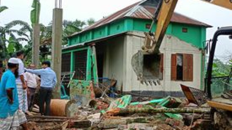 মনোহরদীতে সরকারি জমি থেকে স্থাপনা উচ্ছেদ