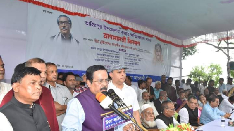 বন্যার্তদের মাঝে ত্রাণ বিতরণ করলেন,বস্ত্র ও পাট মন্ত্রী জাহাঙ্গীর কবির নানক