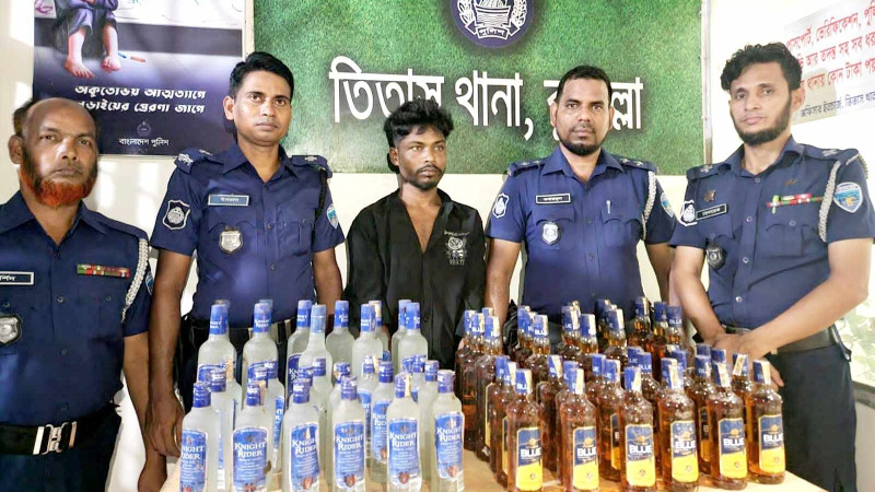তিতাসে বিপুল পরিমাণ ভারতীয় মদসহ ১জন গ্রেফতার