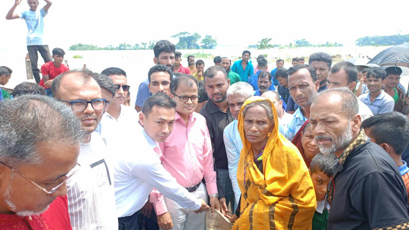 মধ্যনগরে বন্যায় ক্ষতিগ্রস্ত ৮শত পরিবারের মধ্যে ত্রাণের চাল বিতরণ