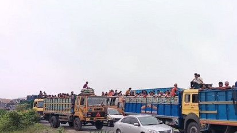 জীবনের ঝুঁকি নিয়ে গরুর ট্রাকে বাড়ি ফিরছে মানুষ