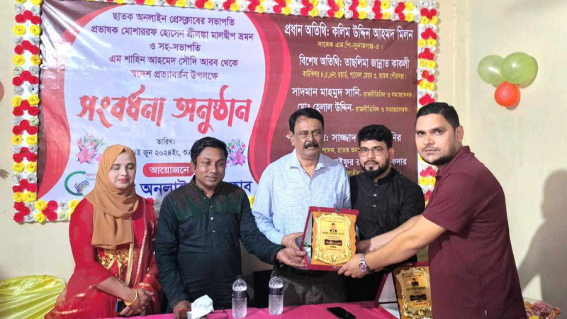 ছাতক অনলাইন প্রেসক্লাবের সভাপতি প্রাভাষক মোশাররফ হোসেন ও এম শাহিন আহমেদ সংবর্ধিত