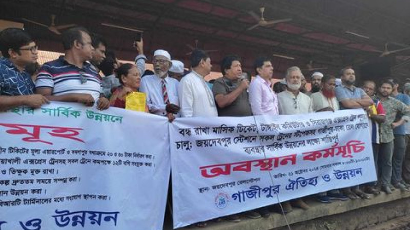 সাধারণ ছাত্র-জনতা ও যাত্রীদের ১০ দফা দাবীতে জয়দেবপুর জংশনে মানববন্ধন