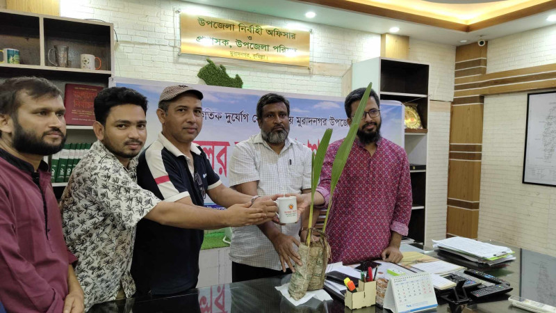 মুরাদনগরে সাংবাদিকদের সাথে উপজেলা প্রশাসনের মতবিনিময় ও তালের চারা বিতরণ