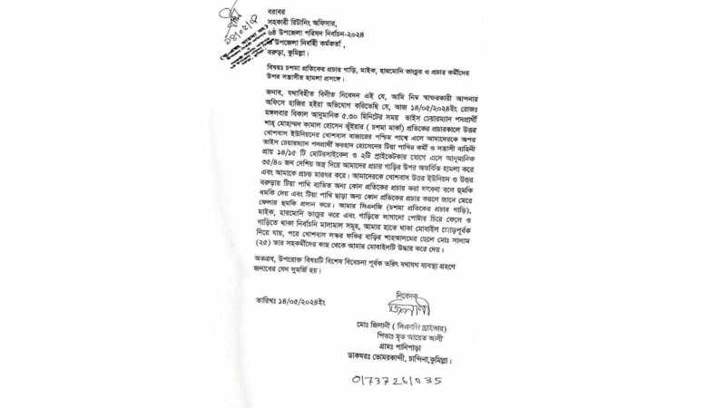 কুমিল্লা বরুড়া উপজেলায় ভাইস্ চেয়ারম্যান পদপ্রার্থী শাহ্ মোঃ কামাল হোসেন ভূইয়ার'চশমা মার্কা'প্রতিকের গাড়ি ভাংচুর