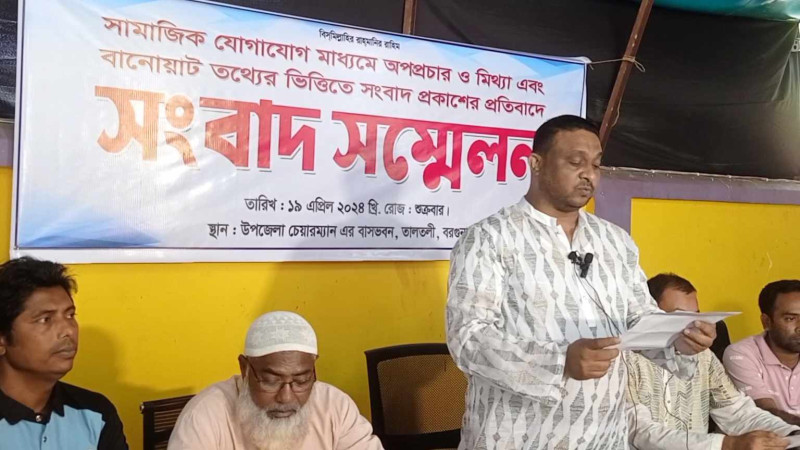 তালতলীতে মিথ্যা ও বানোয়াট তথ্যে সংবাদ প্রকাশের প্রতিবাদে উপজেলা চেয়ারম্যানের সংবাদ সম্মেলন