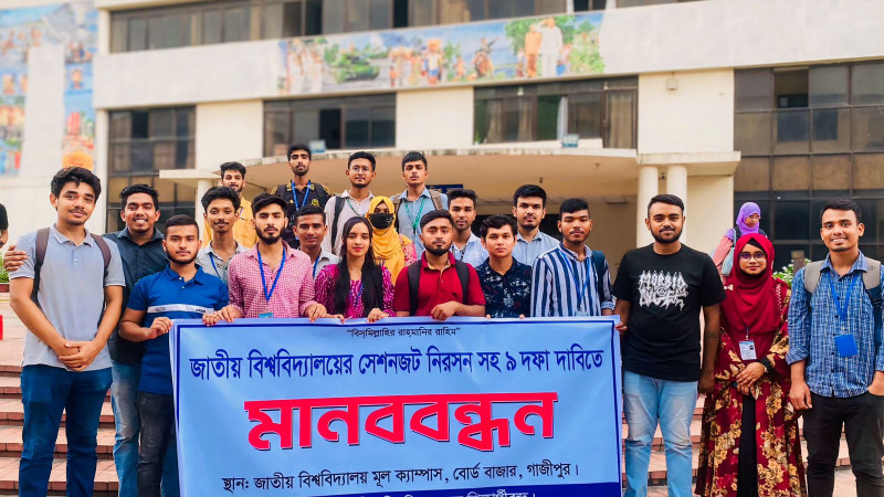 সেশনজট নিরসন সহ ৯দফা দাবিতে জাতীয় বিশ্ববিদ্যালয়ে শিক্ষার্থীদের মানবন্ধন