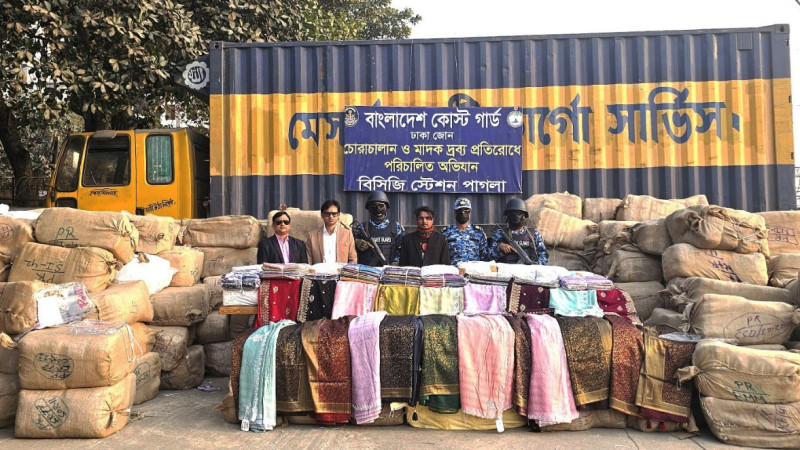 নারায়ণগঞ্জে ২০ কোটি টাকার ভারতীয় শাড়িসহ পাচারকারী আটক করেছে কোস্ট গার্ড