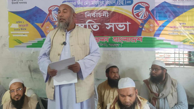 ধুনটে বগুড়া-৫ আসনের হাতপাখার প্রার্থীর আনুষ্ঠানিক প্রচারণা শুরু