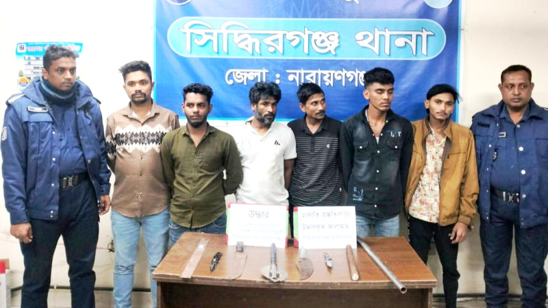 সিদ্ধিরগঞ্জে ডাকাতির প্রস্তুতিকালে ৬ জন গ্রেপ্তার, অস্ত্র ও মাদক উদ্ধার
