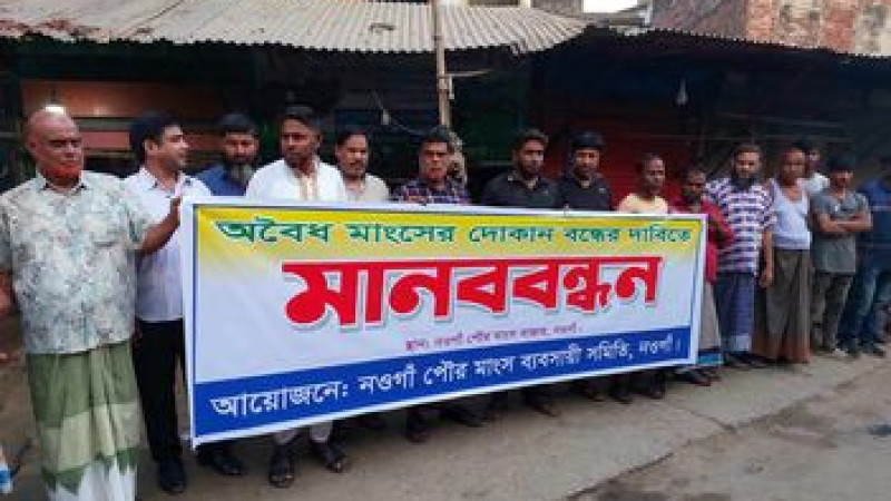 নওগাঁয় অবৈধ মাংসের দোকান বন্ধের দাবিতে মানববন্ধন