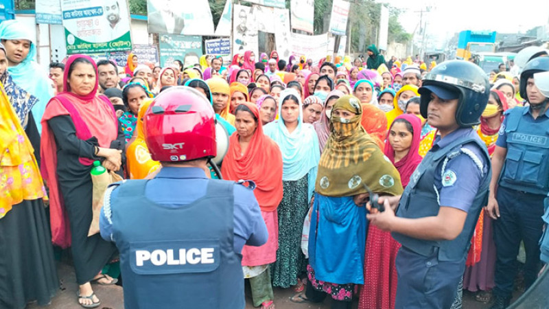 গাজীপুরে বকেয়া বেতনের দাবিতে শ্রমিকদের বিক্ষোভ