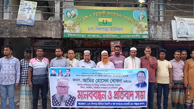 চাটখিলে বিএনপি নেতা খোকনের বিরুদ্ধে অপপ্রচারের প্রতিবাদে মানববন্ধন