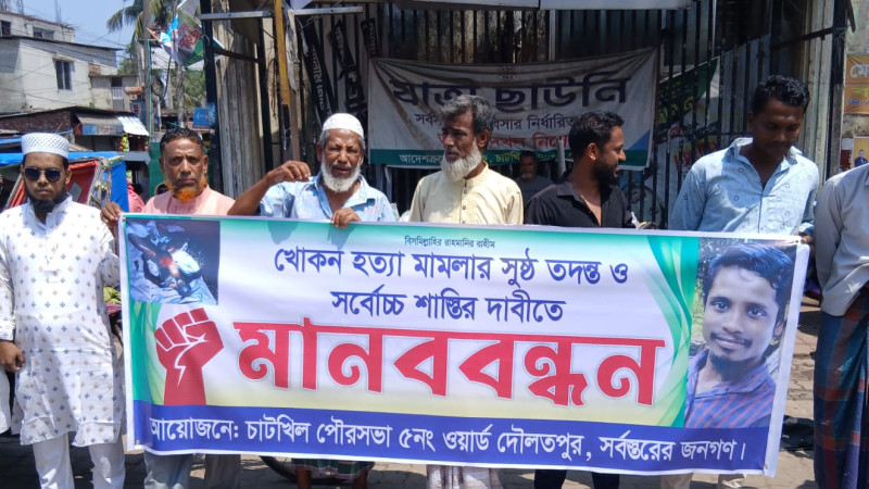 নোয়াখালীতে দিনমজুর খোকন হত্যা,বিচারের দাবিতে মানববন্ধন