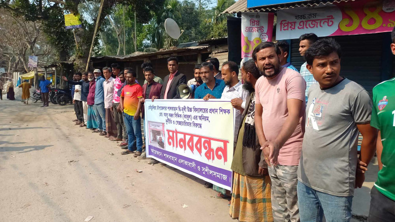 পঞ্চগড়ে প্রধান শিক্ষকের বিরুদ্ধে অনিয়মের অভিযোগে মানববন্ধন