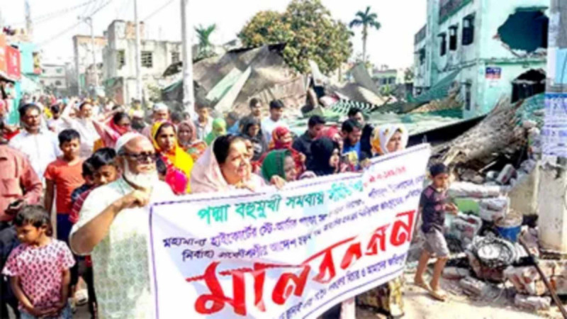 কাশিমপুরে আদালতের আদেশ অমান্য করে উচ্ছেদ,এলাকাবাসীর বিক্ষোভ