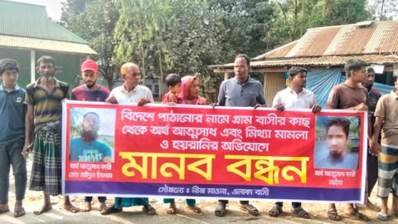 বিদেশে পাঠানোর নামে অর্থ আত্মসাৎ ও হয়রানি: এলাকাবাসীর মানববন্ধন