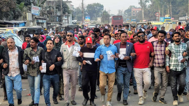 তারই ধারাবাহিকতা'য় ১০ ই জুলাই, বৃহস্পতিবার বেলা সাড়ে বারোটা'র দিকে ক্যামব্রিয়ান স্কুল এর সামনে রাস্তা ব্লক করে অত্র স্কুলের শিক্ষার্থী ও অভিভাবক'দের নিয়ে একটি মানববন্ধন অনুষ্ঠিত হয়।