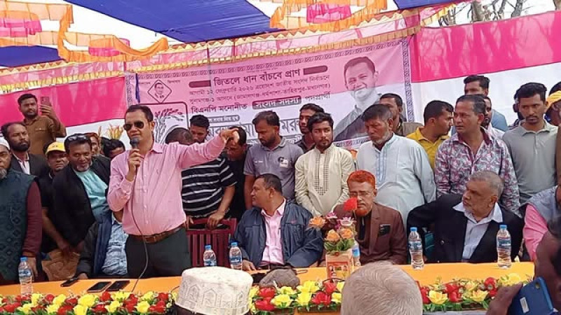 বিএনপি নেতৃত্বাধীন জোটের মনোনীত নারায়ণগঞ্জ-৪ আসনের প্রার্থী মুফতি মনির হোসাইন কাশেমীর খেজুর গাছ মার্কায় ভোট প্রার্থনায় ফতুল্লায় এক বিশাল নির্বাচনী প্রচারণা মিছিল অনুষ্ঠিত হয়েছে।