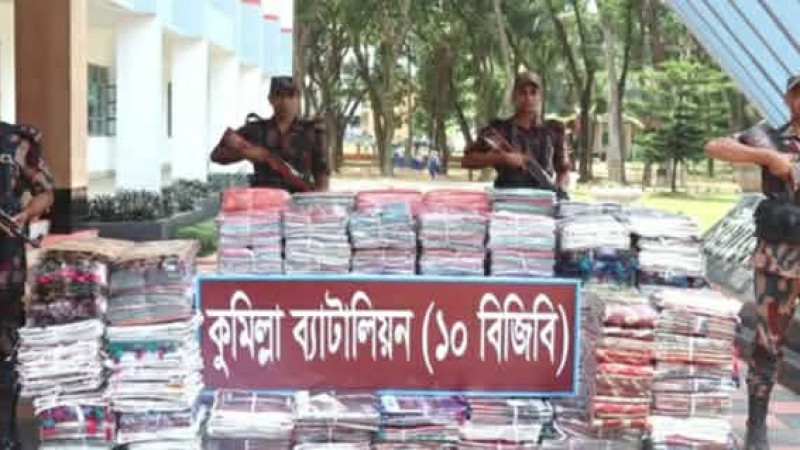 কুমিল্লার সীমান্তে বিপুল পরিমাণ ভারতীয় শাড়ি জব্দ।